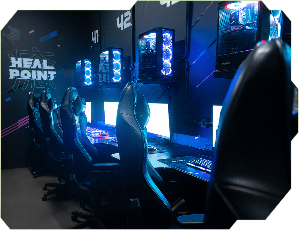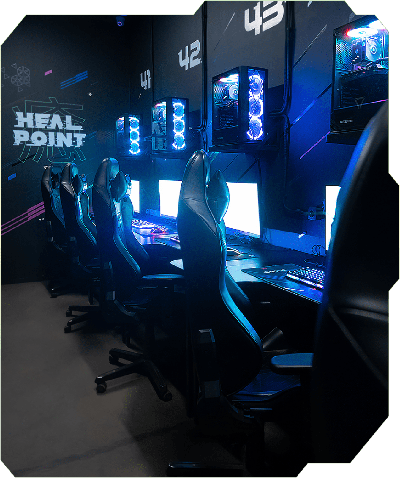 Это не просто компьютерный клуб. Это хорошо оборудованное пространство для геймеров с большим вниманием к атмосфере, проработанным дизайном помещения и лучшим техническим оснащением игровых мест.